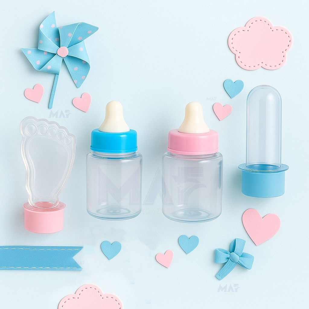 Kit 30 lembrancinhas 10 Mini Tubete 10 Mamadeira 10 Tubete Pezinho Pé Chá de Bebe Fest Chá revelação | ShopRank