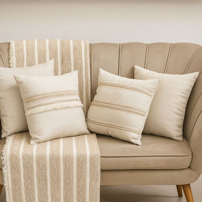 Kit 4 Capas de Almofada Linha Boho Chic 2 Lisas 2 Com Detalhes Elegante | ShopRank