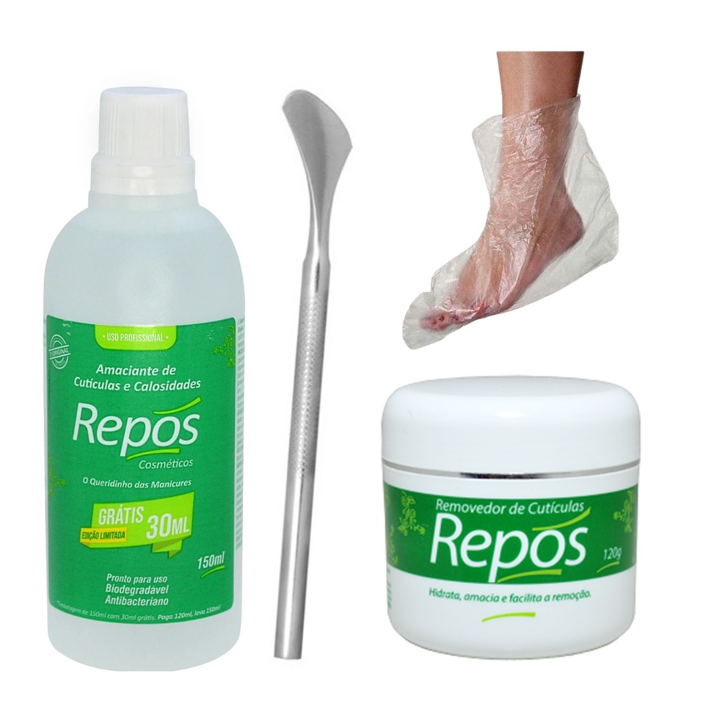 Kit Amaciante de Cutículas 120ml + Creme Removedor Repos + Espátula 222 + 06 Botinhas Descartáveis | ShopRank
