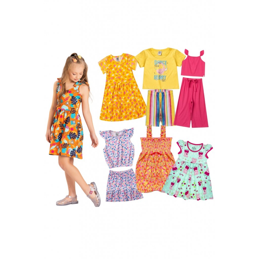 Kit Sortido 12 Peças de Roupas Infantis Feminino Verão - 6 Camisetas + 6 Bermudas | ShopRank