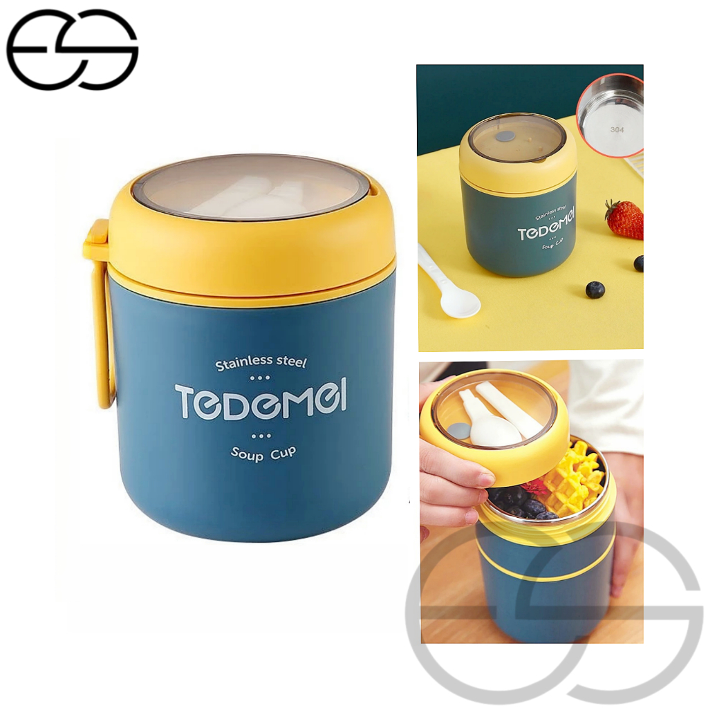 Marmita 530ml Lancheira Térmica Com Colher Pote Para Crianças 304 Aço Inoxidável Forro Sopa Caldo ES | ShopRank