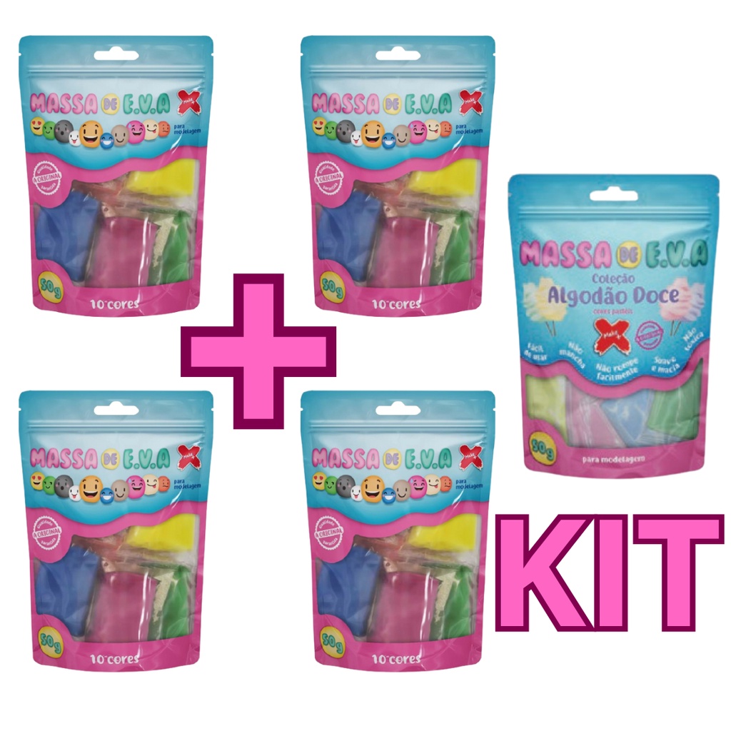 Massinha de EVA Combo 4 pacotes com cores vibrantes e mais 01 com cores pastéis