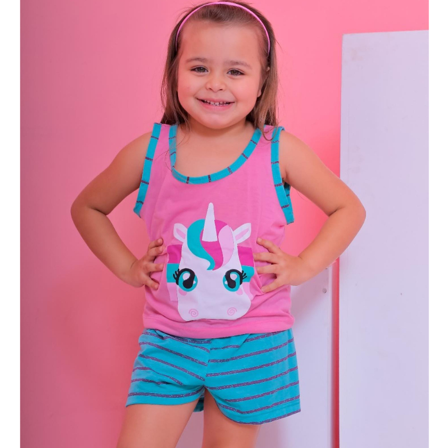 Pijama Infantil Unicornio Regata Baby doll criança estampado Verão Para dormir