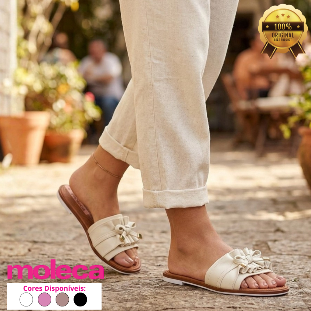 Sandália Moleca Rasteira Feminina Papete Laços Detalhes Confortável Chinelo Casual Slide Original