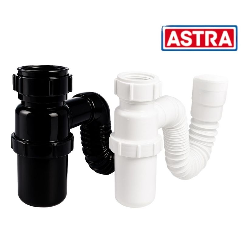 Sifão de Copo BRANCO e PRETO Sanfonado Multiuso Lavatório, Pia, Tanque Astra | ShopRank