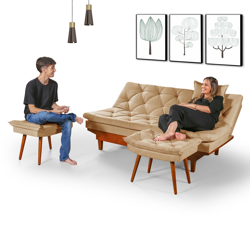 Sofá Cama Caribe Em Suede Com Duas Banquetas Rubi